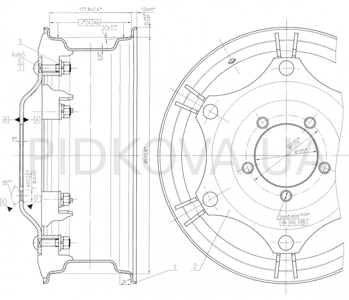 - Для коліс, офарблених ґрунтовкою, допускається застосування кріпильних виробів (поз. 4, 5, 6, 7) з покриттям фосфатним з промаслюванням.